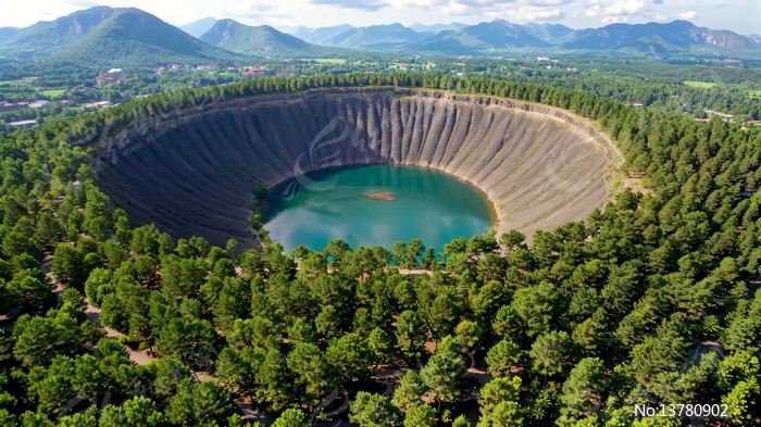 森林环绕的圆形水池俯瞰