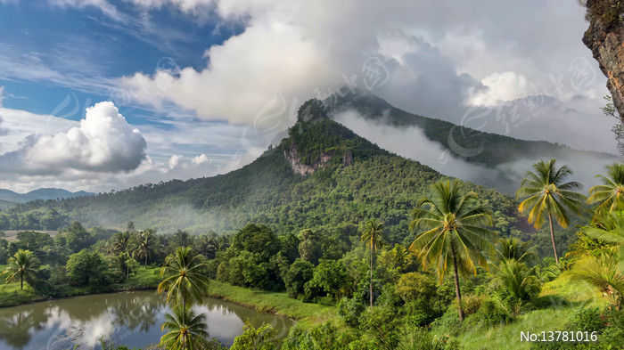 山林湖泊自然风光全景