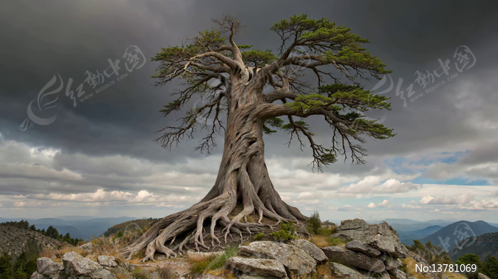 山顶老树与云海风景
