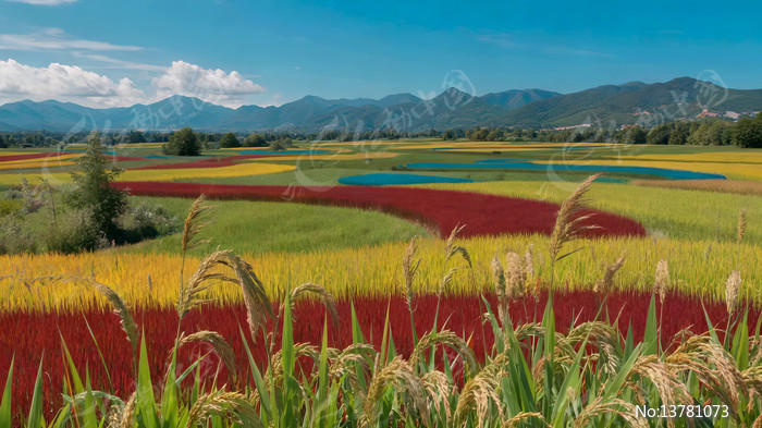 多彩稻田自然风光全景