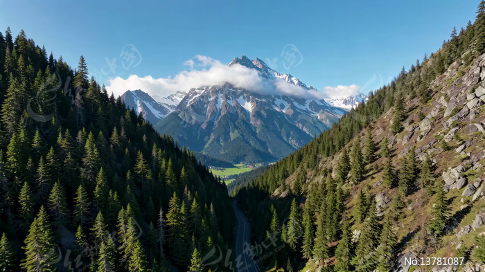 山间森林雪山全景