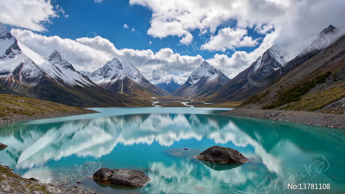 雪山湖泊自然风光全景