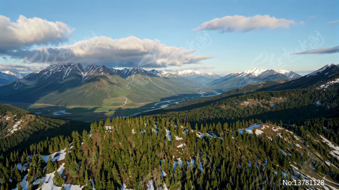 山林雪山全景俯瞰