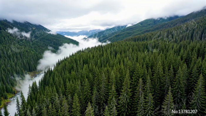 山谷森林云雾鸟瞰全景