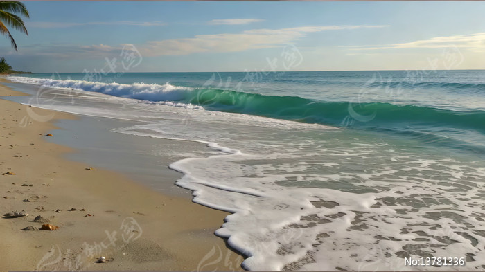 海浪拍打沙滩海岸风光