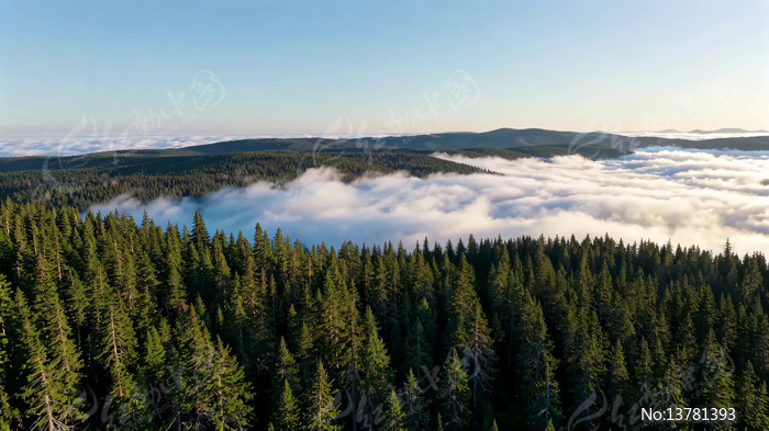 森林云海高空俯瞰景象