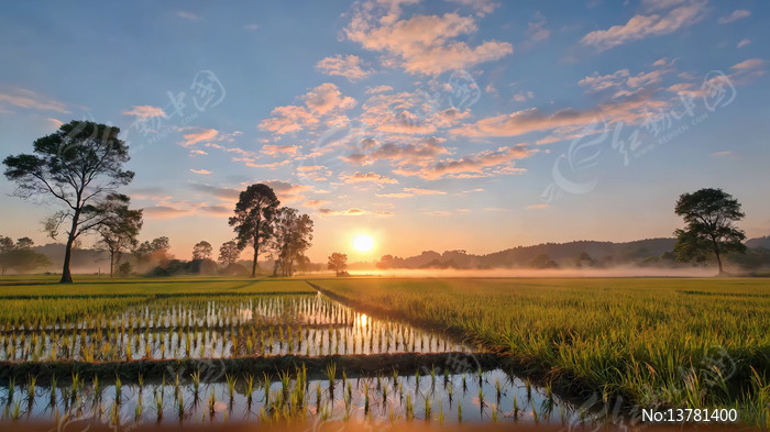 稻田日出自然风光