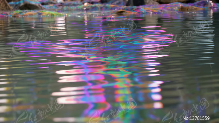 水面彩色光影波纹景象