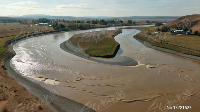 河流草原自然风光航拍素材