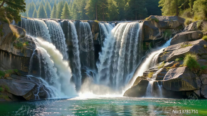 森林中的瀑布自然风光