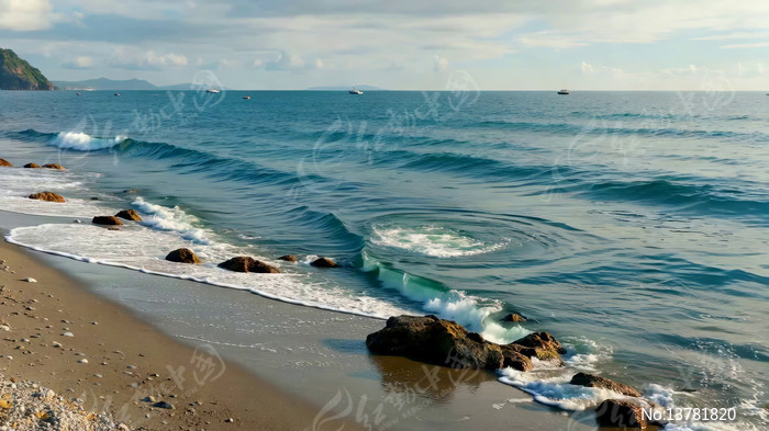 海边海浪拍打沙滩景象
