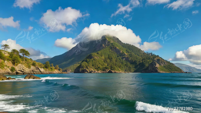 海边山景蓝天白云自然风光