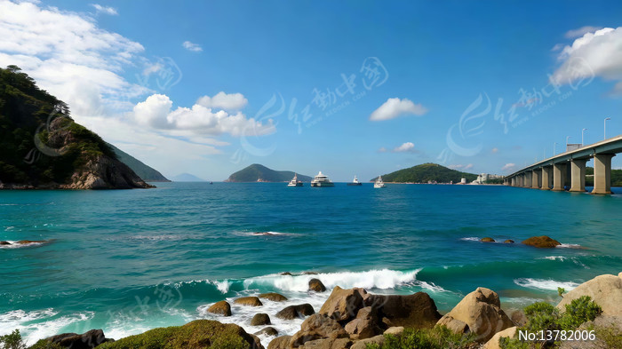 海边礁石与跨海大桥景观