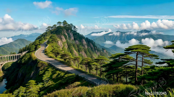 山间公路自然风光全景