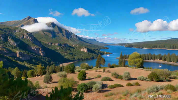 山脉湖泊自然风光全景