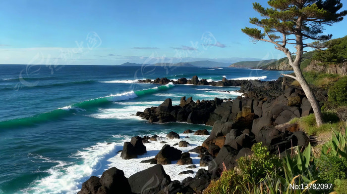 海岸边海浪拍打岩石风景