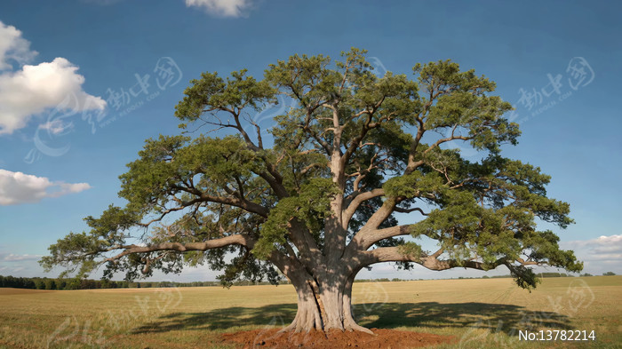 田野中巨大树木全景