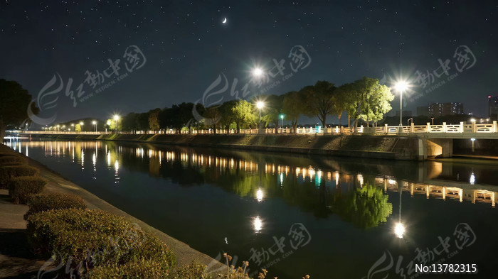 夜晚河畔夜景风光
