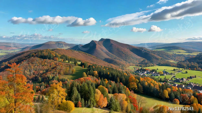 秋季山林乡村全景风光