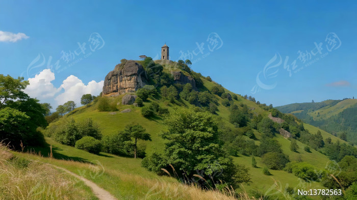 山丘上的塔楼自然风光