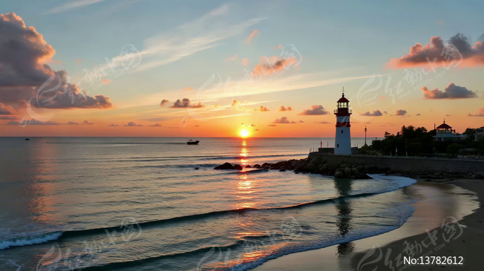 海边灯塔日落自然风光素材