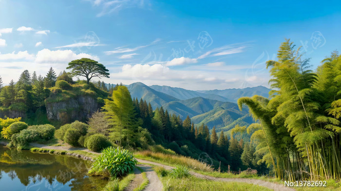 山林间池塘边自然风光