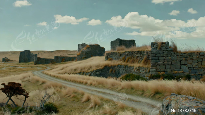 荒野中古老石砌建筑景观