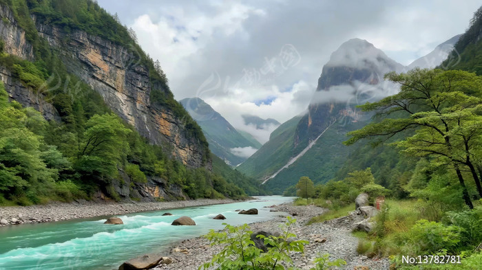 山间河流森林自然风光