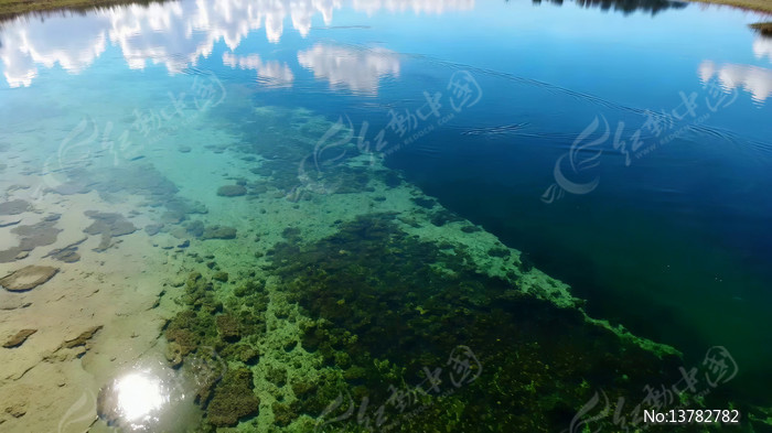 清澈湖泊水面与水底景观