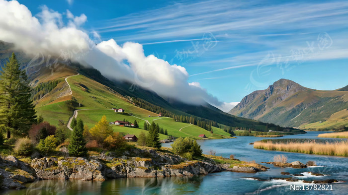 山间湖泊自然风光