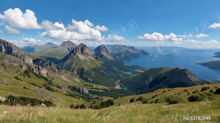山脉湖泊自然风光全景