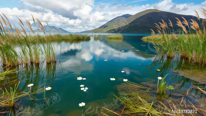 湖泊山脉自然风光全景