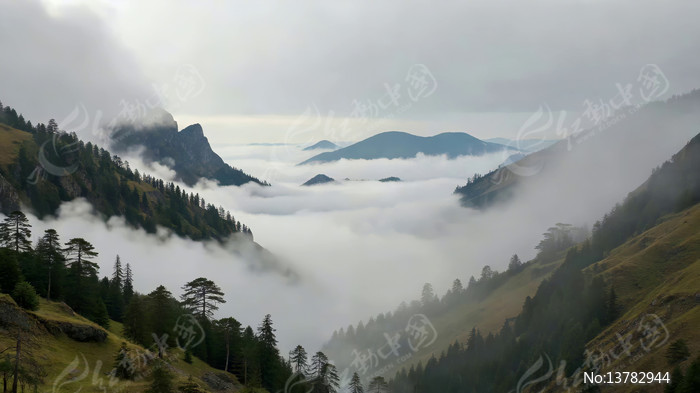 山间云雾缭绕自然风光