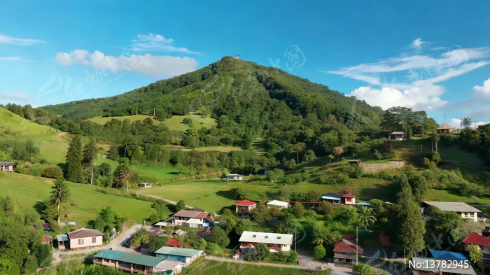 山村自然风光俯瞰全景