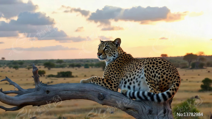 夕阳下草原上休憩的猎豹
