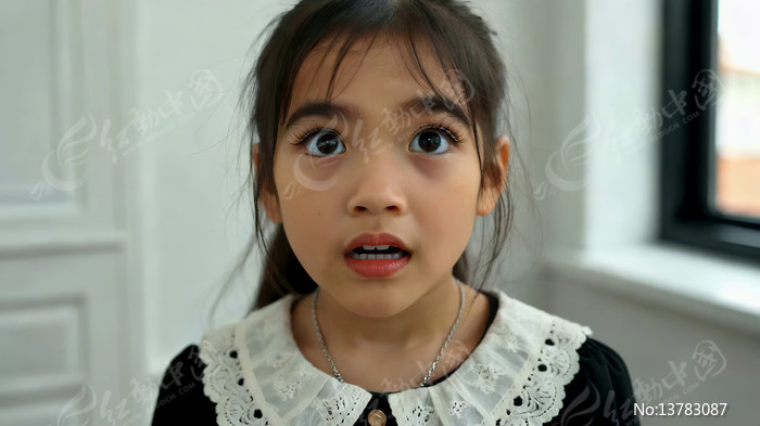 室内小女孩惊讶表情素材