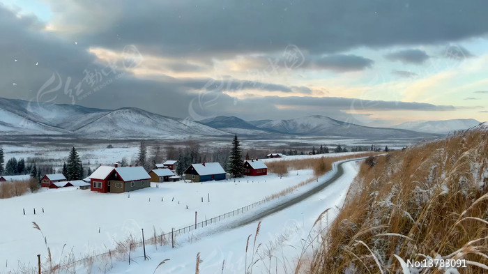 冬日乡村雪景全景