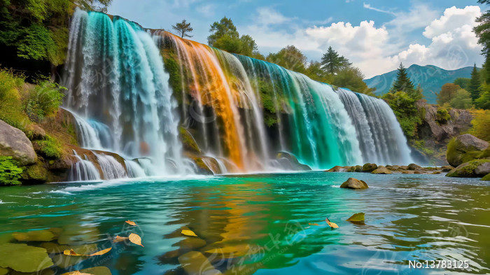 多彩瀑布自然风光素材