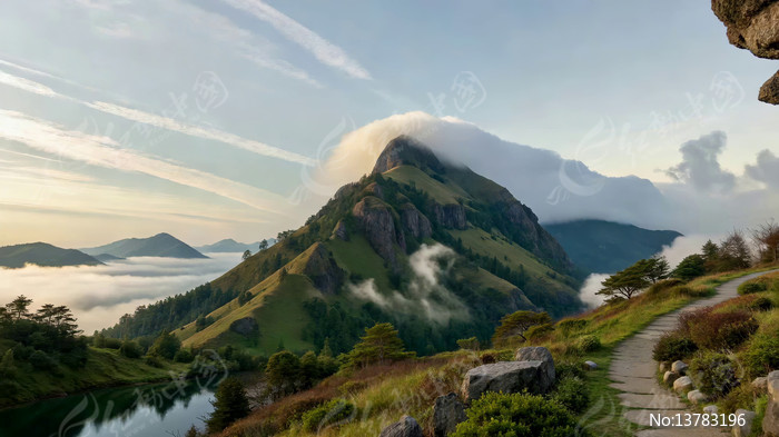 山间云海环绕的山脉景观