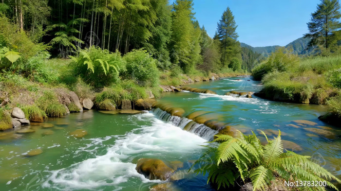 山间河流森林自然风光