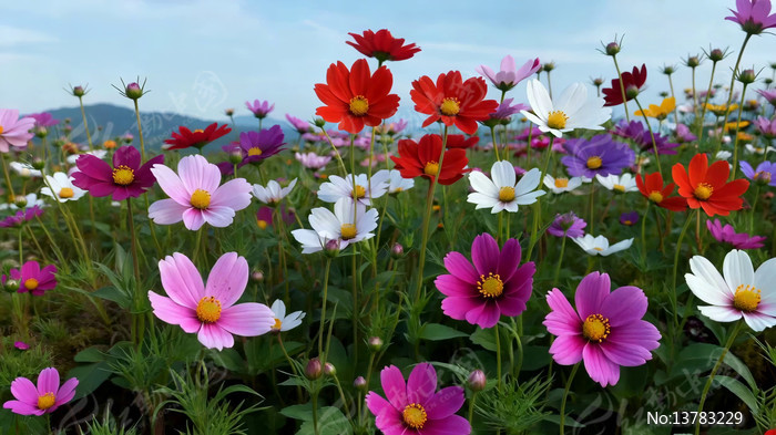 格桑花盛开的花海