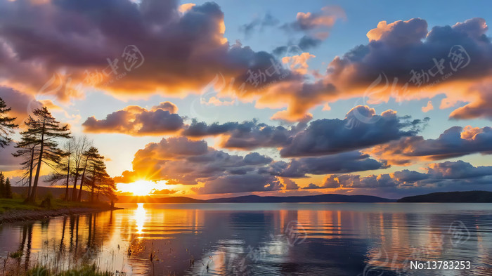 湖畔日落自然风光