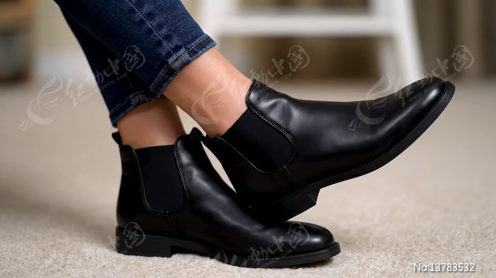 女性黑色短靴特写素材
