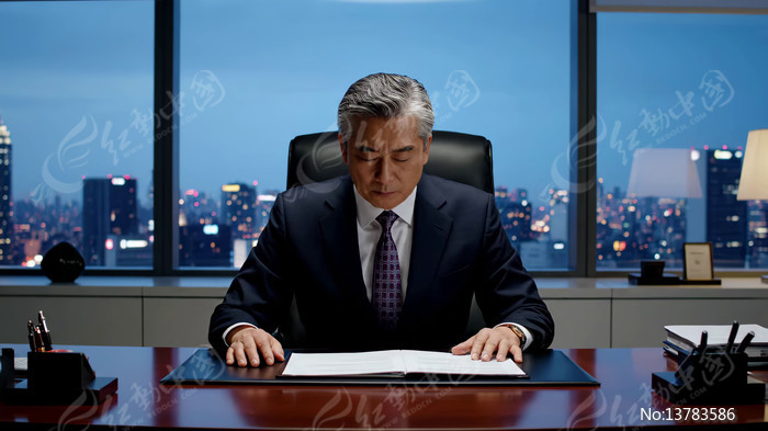商务男士办公室阅读文件