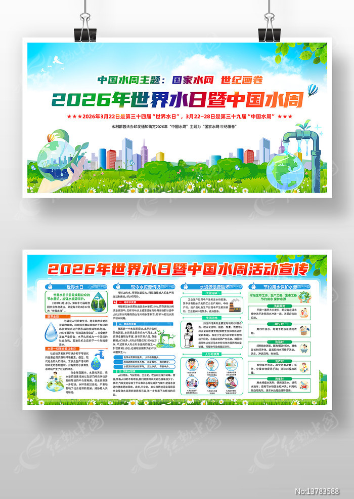 红动中国提供原创中国水周世界水日展板下载,作品以2026年中国水周为主题而设计,可作为2026年中国水周,中国水周宣传栏,2026世界水日,中国水周展板,保护水资源等主题图片使用,中国水周世界水日展板,编号13783588,格式PSD,尺寸6803x3402毫米,大小55.99 MB,欢迎会员进行下载。