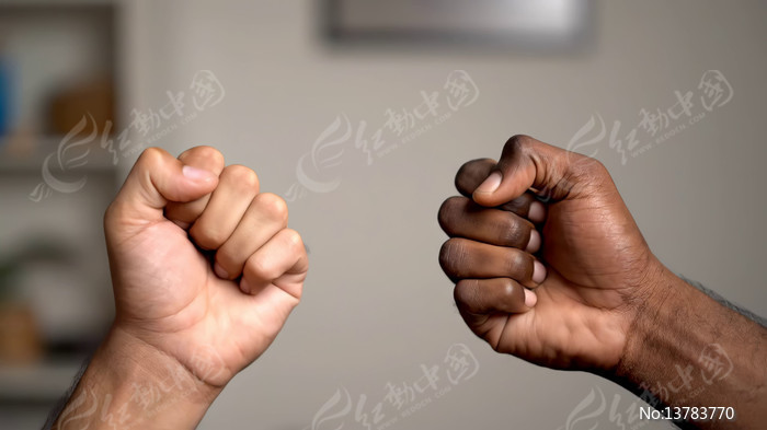 两人拳头相碰特写