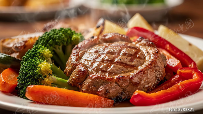 牛排配蔬菜美食特写