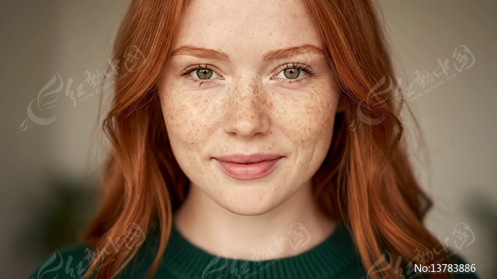 红发女孩微笑特写素材