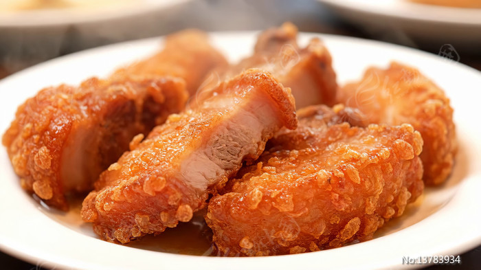 盘中炸五花肉特写素材