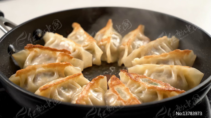 锅中煎制的手工饺子